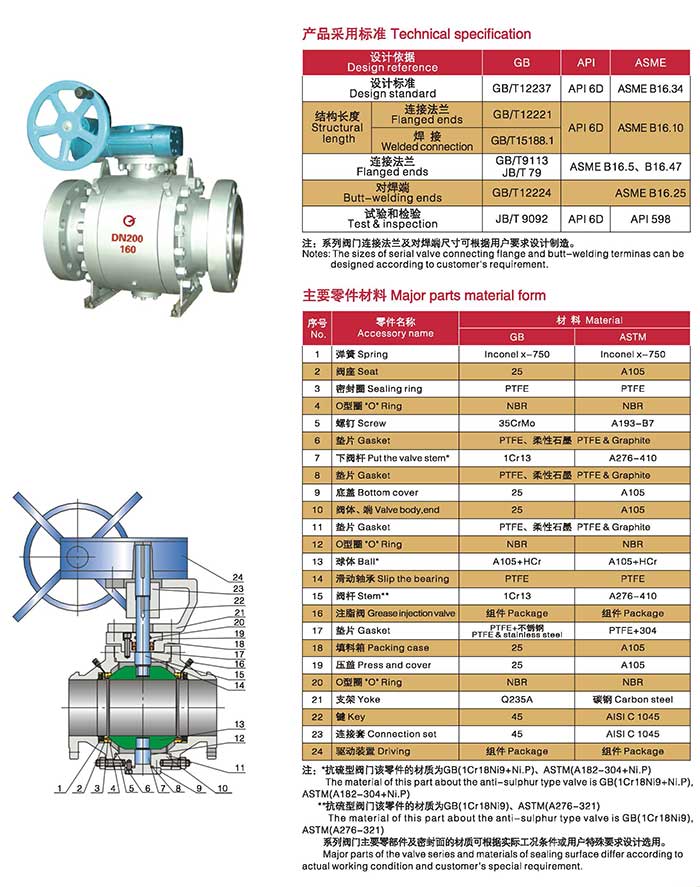 Q347F鍛鋼固定球閥系將閥體在兩閥座部位沿與閥門通道軸線相垂直的截面分為三部分,整臺閥門沿閥桿中心軸左右對稱,它在管道上主要用于切斷、分配和改變介質(zhì)流動方向。它的大樞軸結(jié)構(gòu)保證在高壓下準確的球體中心位置,保證了閥門良好的操作性能;標準閥座采用彈簧結(jié)構(gòu),將閥座推向球體,保證了良好的進出口雙向密封性能;利用自帶的排放閥,閥體中腔可向外排放;樞軸采用防吹出保護結(jié)構(gòu),有效地防止泄漏;低磨擦系數(shù)的軸承,使得扭矩減少到最小,便于閥門啟閉;閥桿與閥體有效的接觸,使防靜電接地裝置性能優(yōu)越等。具有性能優(yōu)異,可靠性高,用途廣泛,價格合理等優(yōu)點。